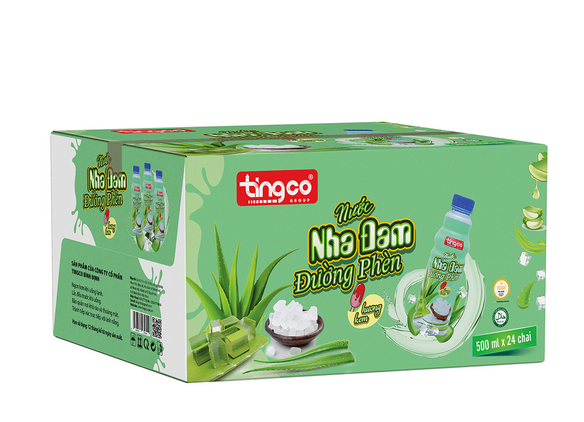 Chứng nhận chất lượng: Sản phẩm Nước Nha Đam Đường Phèn Tingco đảm bảo quản lý theo hệ thống chất lượng quốc tế ISO 22000: 2018, HACCP, HALAL.