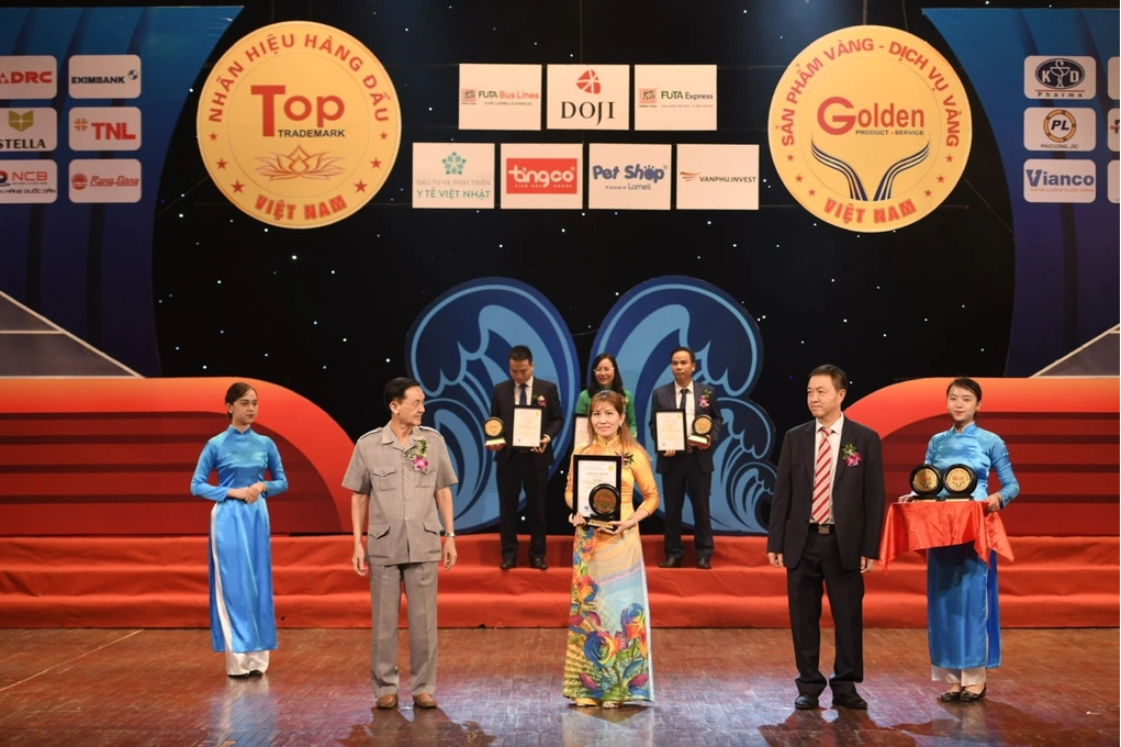 Bà Võ Thị Nguyệt Nga - Giám đốc công ty nhận giải Top 10 Sản phẩm vàng Việt Nam năm 2022.